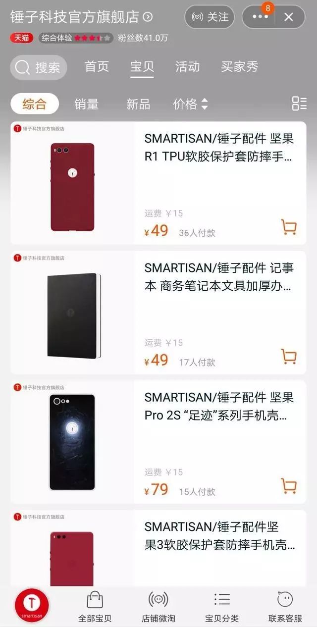 2月8日,有消息称,锤子科技天猫官方旗舰店,多数商品下架,在售产品中仅有手机壳、手机膜等几款产品类别。