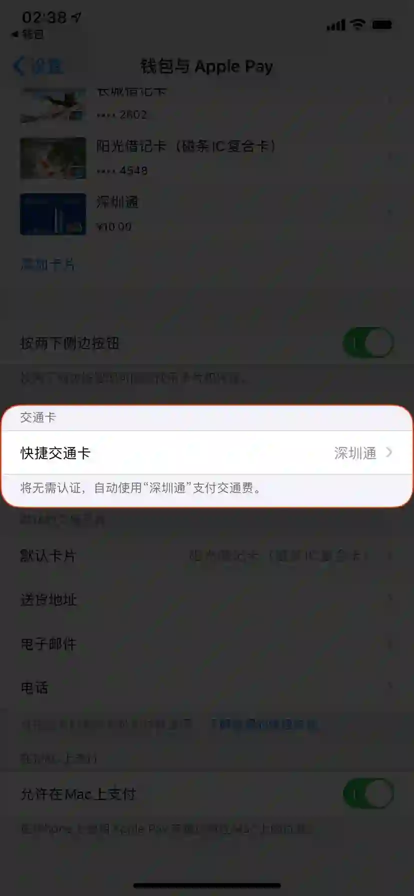 目前,深圳交通卡支付方式仅支持 Apple Pay 中添加的借记卡,信用卡和其他交通卡无法用作充值。