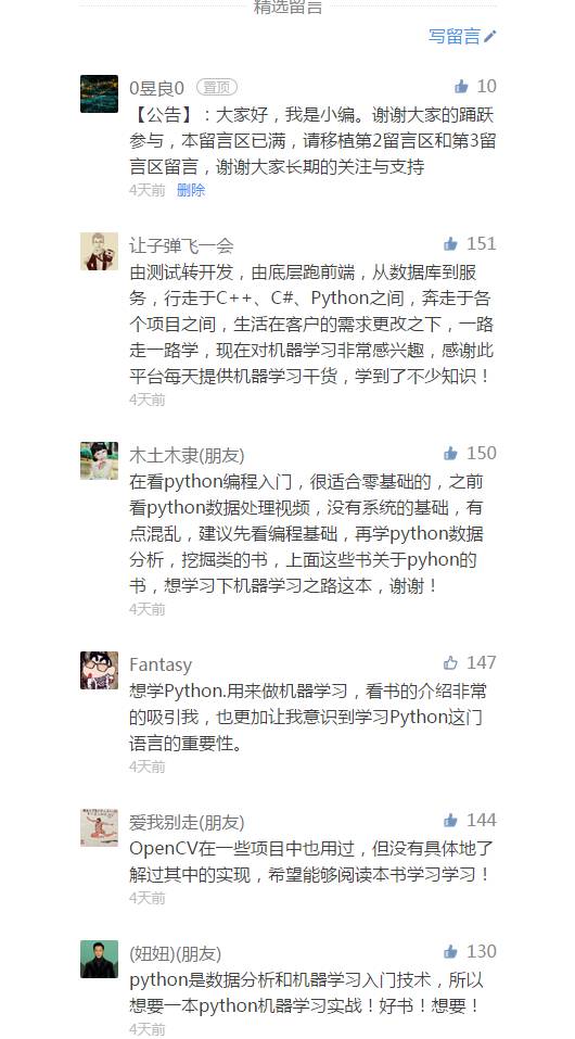 同时,没有获奖的小伙伴们也不必遗憾,小编会尽快组织第3期的送书活动。除此之外,今后我们也会组织更多有意义的活动,为机器学习算法与Python学习的小伙伴们谋求更多的福利!
