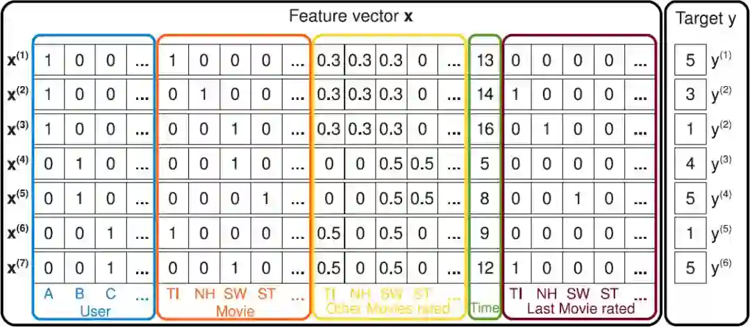 向量分解机(Factorization Machines, FM)是一种应用较为广泛的推荐模型,其发明者Steffen Rendle目前供职于Google。FM是对传统LR模型在处理高阶交互特征问题上的优化和改进:LR通过特征交叉的方式,将组合后的特征作为新特征加入到模型中,模型复杂度为O(N^2)(N为交互特征的数量,下同),记忆性较强而泛化性偏弱;FM通过将特征表征为隐向量,通过隐向量的相似度(內积)来表示特征关联这种方式来巧妙地提升模型的泛化能力;FM模型的复杂度为O(N*k)(k为隐向量维度超参)。