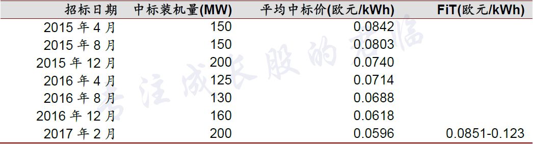 德国2014 年进行大型地面光伏电站项目的招标试点, 2015 年开始对100kw 以上的项目实施招标制。