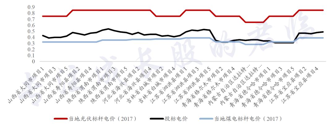 第三批领跑者计划投标电价与当地光伏标杆电价及煤电标杆电价