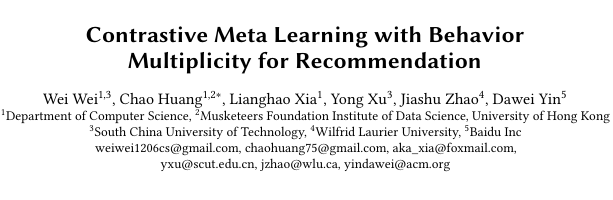 Contrastive Meta Learning with Behavior Multiplicity for Recommendation