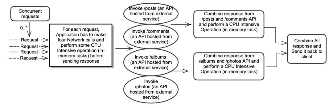 与内存中的任务不同,I/O 任务中涉及的线程将被阻塞,并处于等待状态,直到外部服务响应或超时。因此,当涉及 I/O 任务线程被阻塞时,应该增加线程的数量,以处理来自并发请求的额外负载。