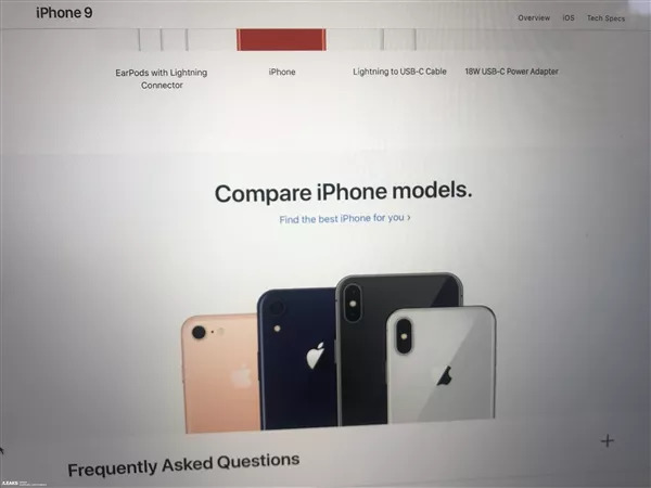 SlashLeaks曝出了两张疑似苹果官方网站页面屏摄图,赫然显示着“iPhone 9”,至少有金色、太空灰色、亮橙色(Spicy Orange)、钴蓝色(Cobalt Blue)五种配色风格。