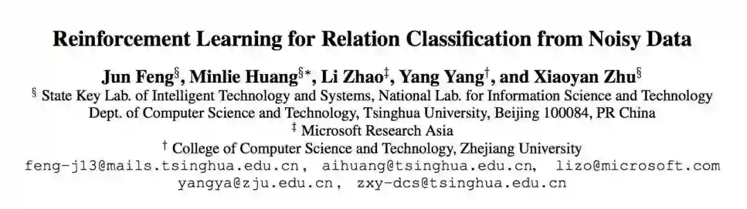 论文 | Reinforcement Learning for Relation Classification from Noisy Data