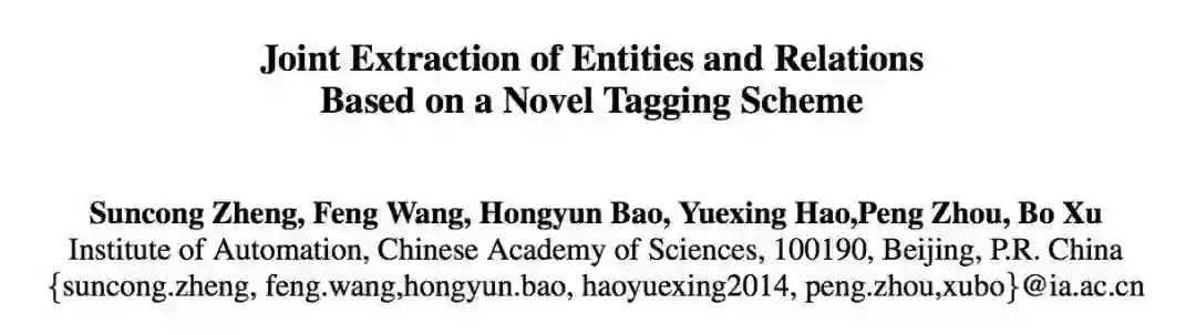 论文 | Joint Extraction of Entities and Relations Based on a Novel Tagging Scheme