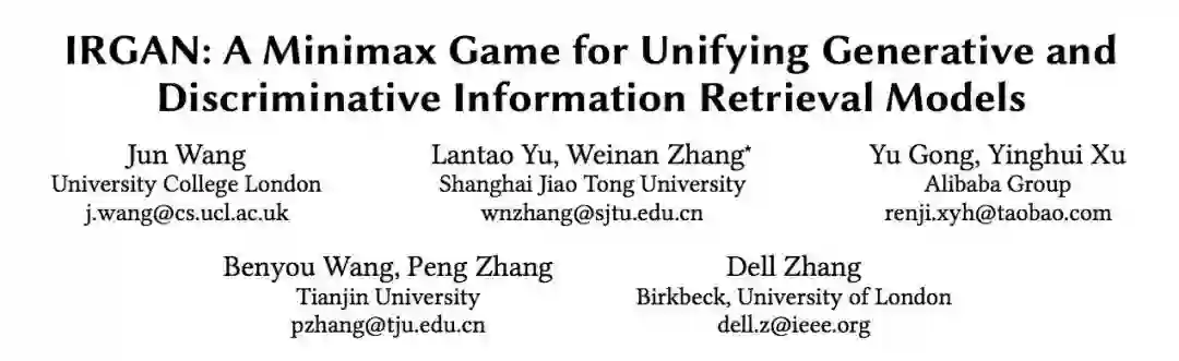 论文 | IRGAN: A Minimax Game for Unifying Generative and Discriminative Information Retrieval Models