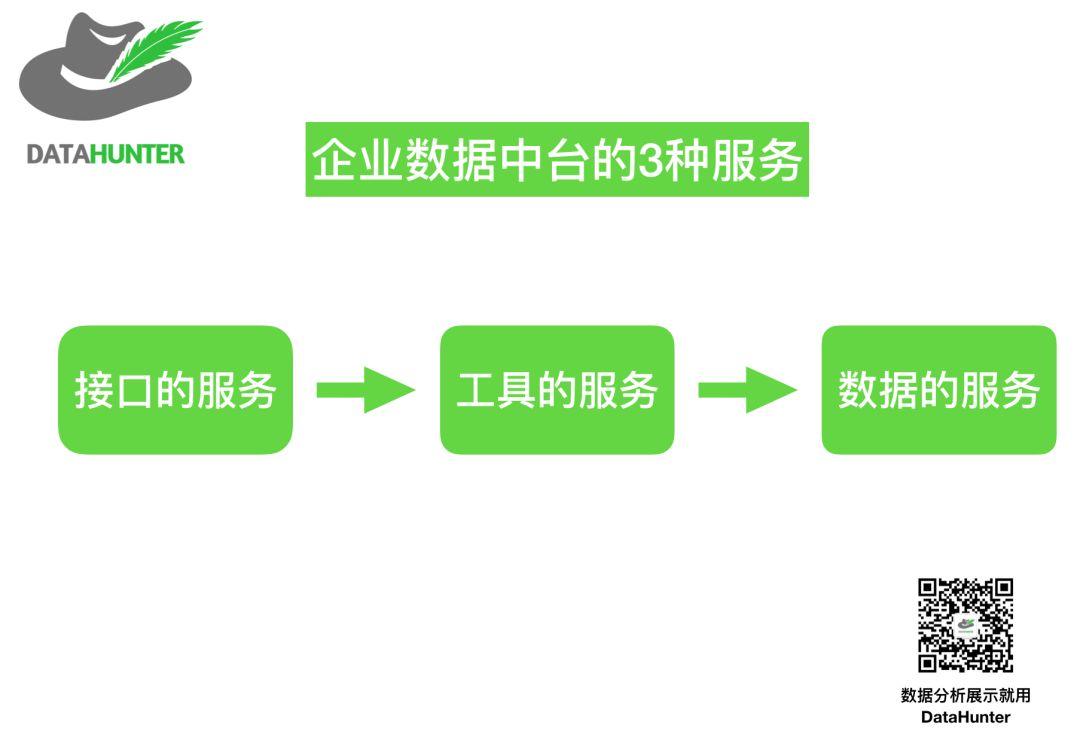 数据中台主要提供三类服务:依赖接口的服务、依赖工具的服务和依赖数据的服务(包括垂直数据中心、公共数据中心和萃取数据中心)。