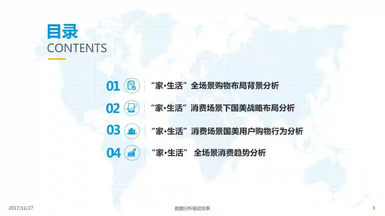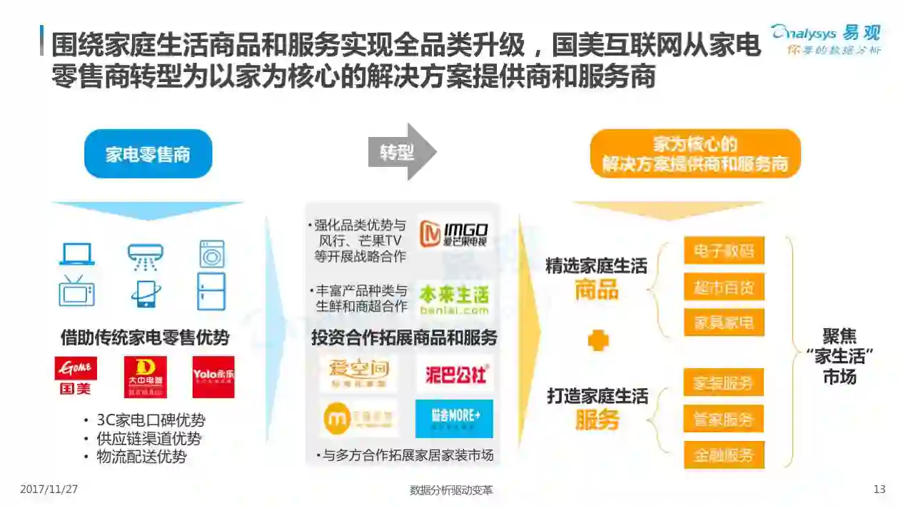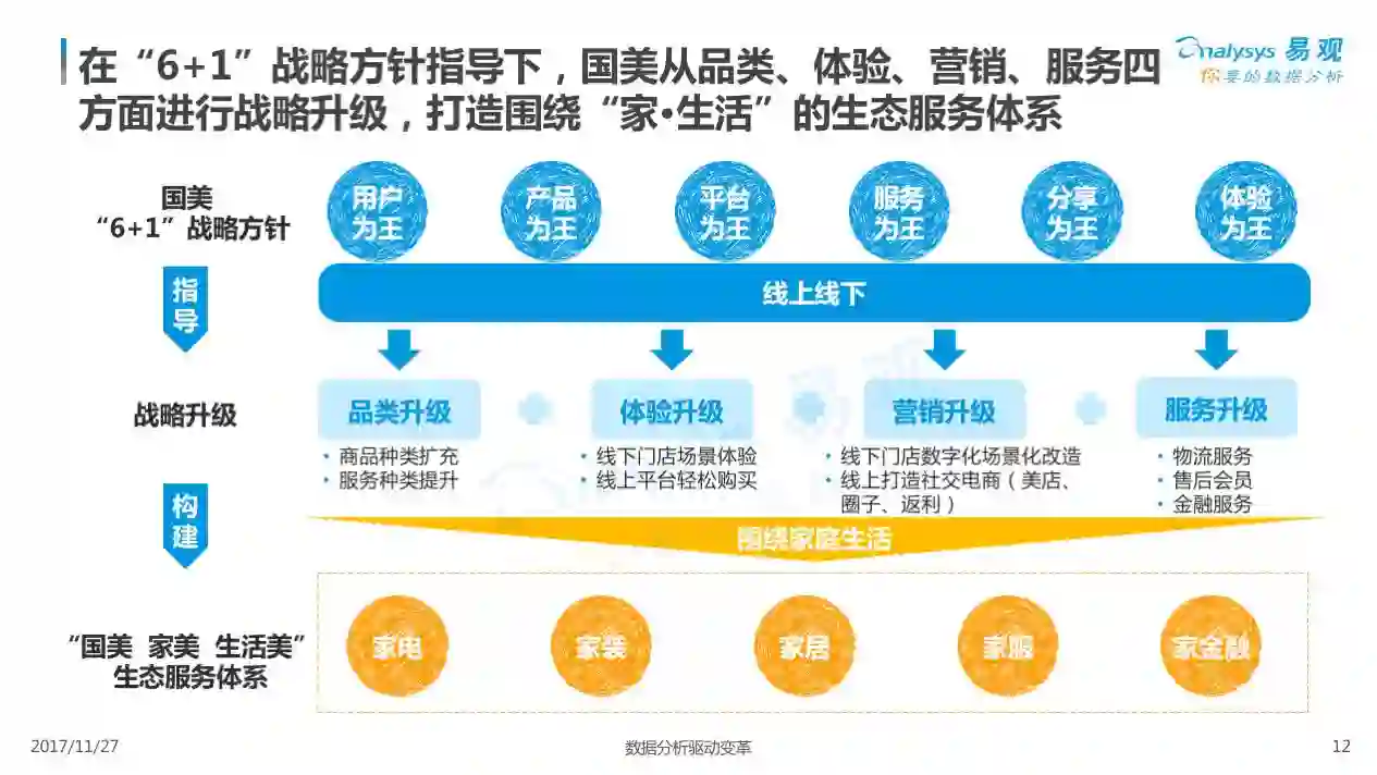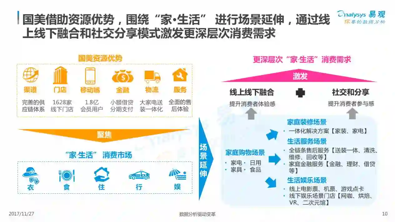 本内容通过聚焦国美互联网“家·生活”消费场景布局的背景,对国美互联网在“新零售”趋势下的战略方针进行详细分析,并对国美互联网的用户消费特征、“家·生活”全景消费趋势做出解读。