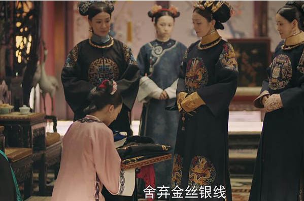 在凤袍被毁这段戏中,为了替代珍贵的孔雀羽线,璎珞无奈采用了鹿尾短绒,本来这是她的过失所在,但她却巧妙引用了皇后“金丝银线奢靡浪费”的旧话,来解释自己为何用朴素材料取代贵重材料。一番言论,合乎情理,还会让众人觉得她的确花费了心思。最终果然令皇后称赞其“心思巧妙”,转危为安。之后,她又主动向皇后坦白原委,博得皇后好感,最终成功进阶,一跃成为长春宫大宫女。