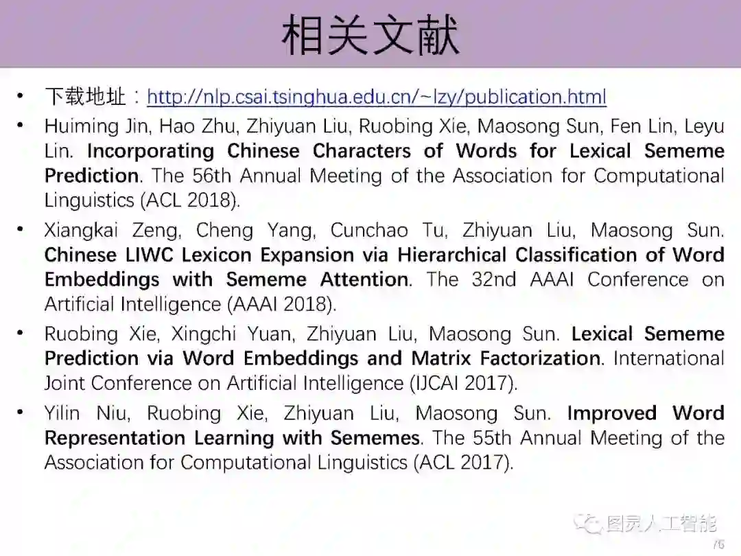 导读:介绍了分布式学习为什么会成为当前深度学习的基本特征,以及如何影响了计算机视觉、自然语言处理和语音识别等无结构信息的处理。报告主要讲授面向自然语言处理的语义表示学习的基本原理与技术,介绍面向汉字、词汇、短语、知识和网络等研究对象的语义表示学习的基本思想,并展望在该方向的主要挑战与前沿方向;并且根据其研究组投稿的情况,给了参会学者非常真实的顶级会议投稿意见,以及未来的研究方向;建议作一些更具有创新性的工作,如他们研究组基于Hownet进行的相关研究。