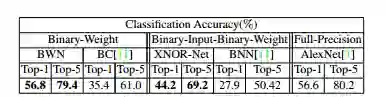 表5 ImageNet上二值网络与AlexNet结果对比[7]