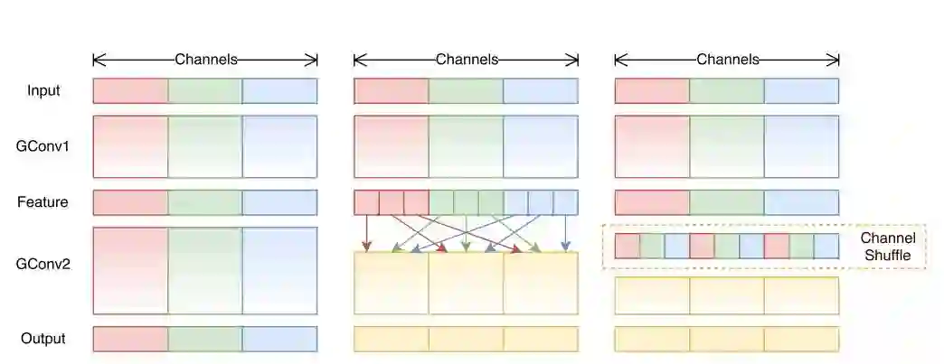 我们知道,卷积中的group操作能够大大减少卷积操作的计算次数,而这一改动带来了速度增益和性能维持在MobileNet等文章中也得到了验证。然而group操作所带来的另一个问题是:特定的滤波器仅对特定通道的输入进行作用,这就阻碍了通道之间的信息流传递,group数量越多,可以编码的信息就越丰富,但每个group的输入通道数量减少,因此可能造成单个卷积滤波器的退化,在一定程度上削弱了网络了表达能力。