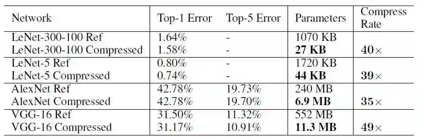 表4 不同网络采用Deep Compression后的压缩率[6]