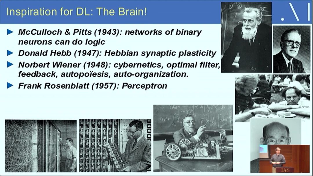 上面这张 PPT 展示了深度学习的根源,即启发了深度学习的一些理论。