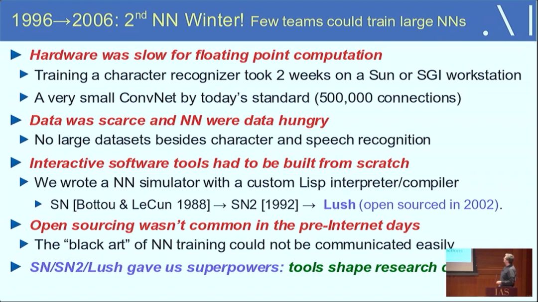1996~2006 年的 10 年间,是神经网络的第二个冬天。这期间,很少有团队能够训练大型神经网络。
