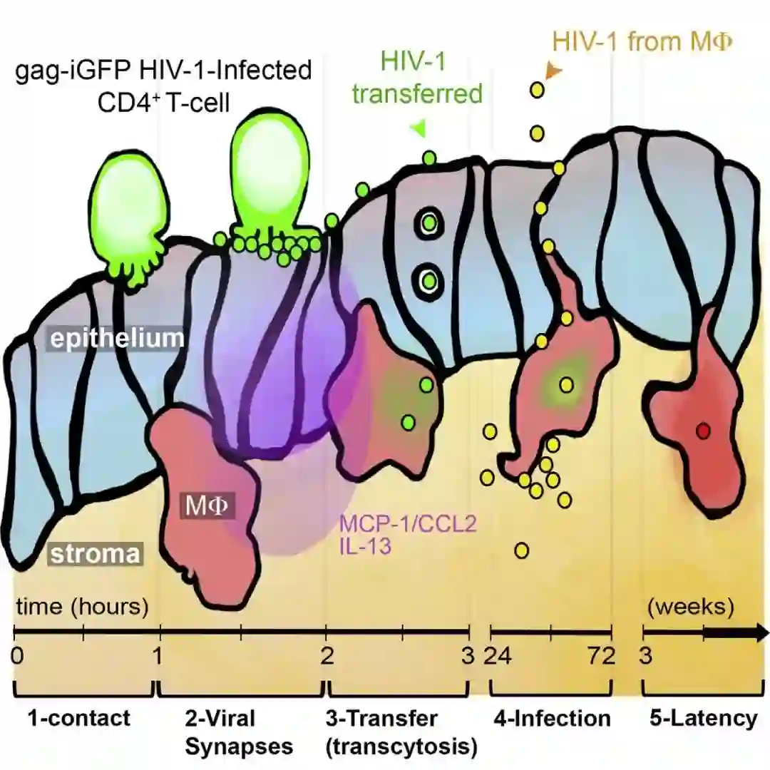 通过这次研究,科学家们将性交过程中的 HIV 感染总结为以下几个步骤: