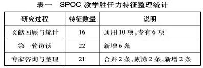 在22篇文献中,有16篇聚焦于高校教师通用胜任力模型建构,以班级课堂授课为背景,胜任力特征较宽泛,一些胜任力维度分类也存在交叉重叠;而针对某种具体情境下的高校教师胜任力研究显得不足,只有6篇文献研究了在线教育或网络教育环境下的胜任力(其中MOOC1篇、远程教育4篇、翻转课堂1篇),周榕(2012;2014)通过行为事件访谈法完成了远程教育中11项通用胜任力及5项岗位序列胜任力的内容设计,并进而基于灰色系统方法构建了胜任力评估指标体系;颜正恕(2015)以相关文献为研究样本,使用特征项抽取和编码统计法构建了高校教师慕课教学胜任力模型,并对模型进行验证。以上研究对高校教师SPOC混合教学胜任力构建有一定参考价值。