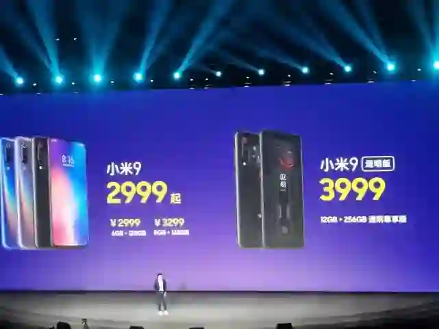 2月20日,小米9正式发布,小米9标准版售价2999元起,透明版售价3999元起。在发布会现场,雷军还将小米9和华为Mate 20进行对比,称自己仔细研究了华为Mate 20之后信心大增。