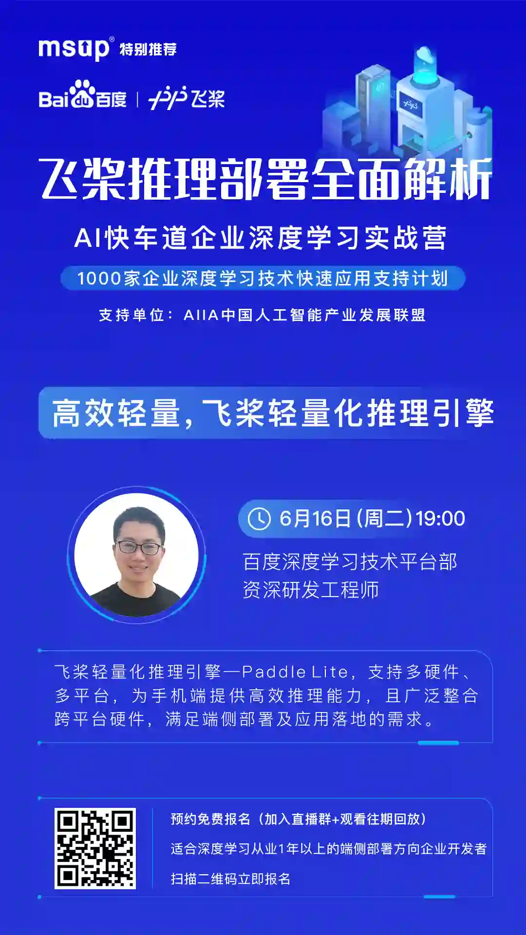 6月16日19:00,百度深度学习技术平台部资深研发工程师将带来更多详解,欢迎报名学习。