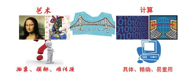 感知和创作具有美感的艺术作品的经验知识需要通过较长时间的训练,艺术具有抽象、模糊、难传授等特点,而计算具有具体、精确、易重用等特点,如图2所示。在物质生活日益丰富的今天,需要为人们提供创造美的便捷工具。如果使计算机或机器人完成艺术创作中的大量非创造性体力劳动,就能够使得人类更好地集中精力发挥创作才能,从而使得更多的人能够创作以前只有专业艺术家才能创作的艺术作品,这首先需要计算机能够识别“美”。