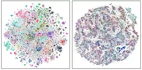 CAE 基于可见 patch 的表征,在掩码 patch 区域做预测,这要求 CAE 对可见 patch 的内容有比较好的理解。举例来说,人们看到一只狗的头部,可以预测出它的身体部分;看到一小片天空,也能预测出它的周围大概率也是一片天空。因此,研究者认为 CAE 学到的表征可以区分不同类别的对象/stuff。为了验证这一点,研究者从 ADE20K 数据集随机采样一些图片输入到编码器。因为 ADE20K 提供了每个像素的类别标签 (150 类),因此该研究可以使用 t-SNE 对编码器输出的表征进行可视化。如下图所示,每个颜色代表一个类别,左图是 CAE,右图是随机初始化的编码器。研究者发现 CAE 可以有效区分不同类别的对象/stuff (因为是在 ImageNet-1K 进行预训练,所以区分得不够完美),而随机初始化的编码器无法做到这一点。