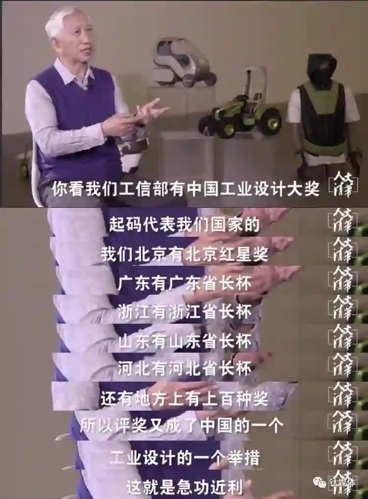 柳冠中教授介绍,中国也有大量自己的工业设计大奖,比如,北京有北京红星奖,广东有广东省长杯,浙江有浙江省长杯,山东有山东省长杯,河北有河北省长杯,还有地方上有上百种奖,评奖又成了中国的一个工业设计的一个举措,这就是急功近利。