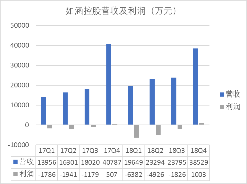 据招股书公布的数据,如涵在2017财年、2018财年和2019财年前三季度实现的GMV分别为12亿元、20亿元、22亿元,实现的营收分别为5.77亿元、9.47亿元、8.56亿元,当季亏损分别为4013万元、8995万元及5750万元。除拥有“双11”和“双12”等电商促销节的第四季度外,如涵始终处于亏损状态。