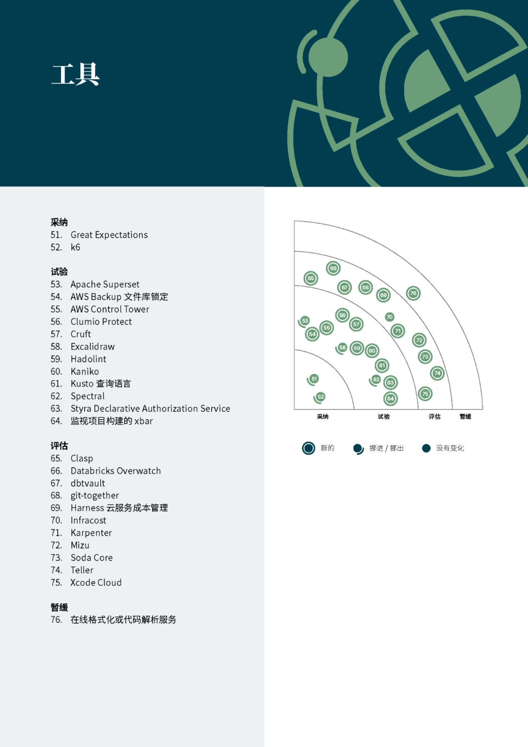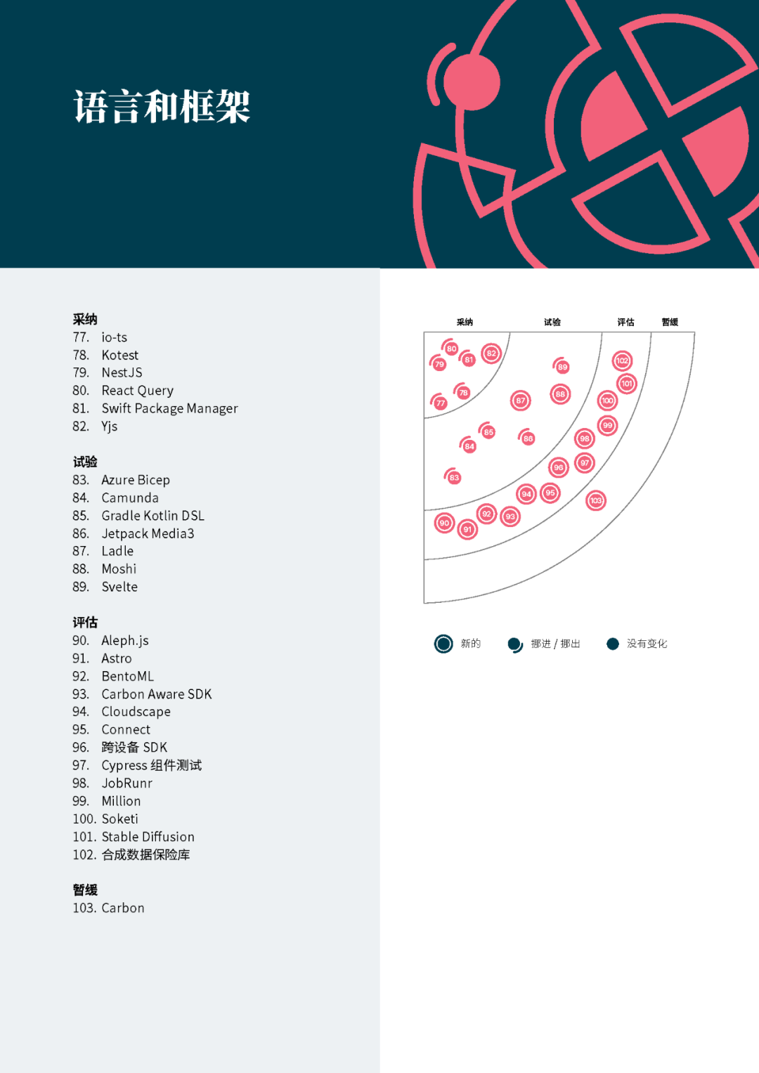 以上是我们在最新一期技术雷达中随机摘取的几个条目
