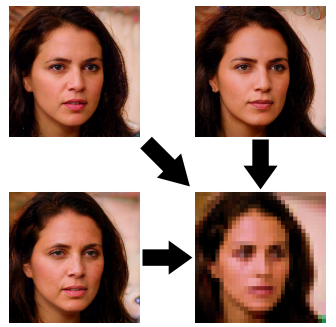 PULSE的特点在于,可以将多个不同但相似的人脸图像聚合为同一个低分辨率图像。