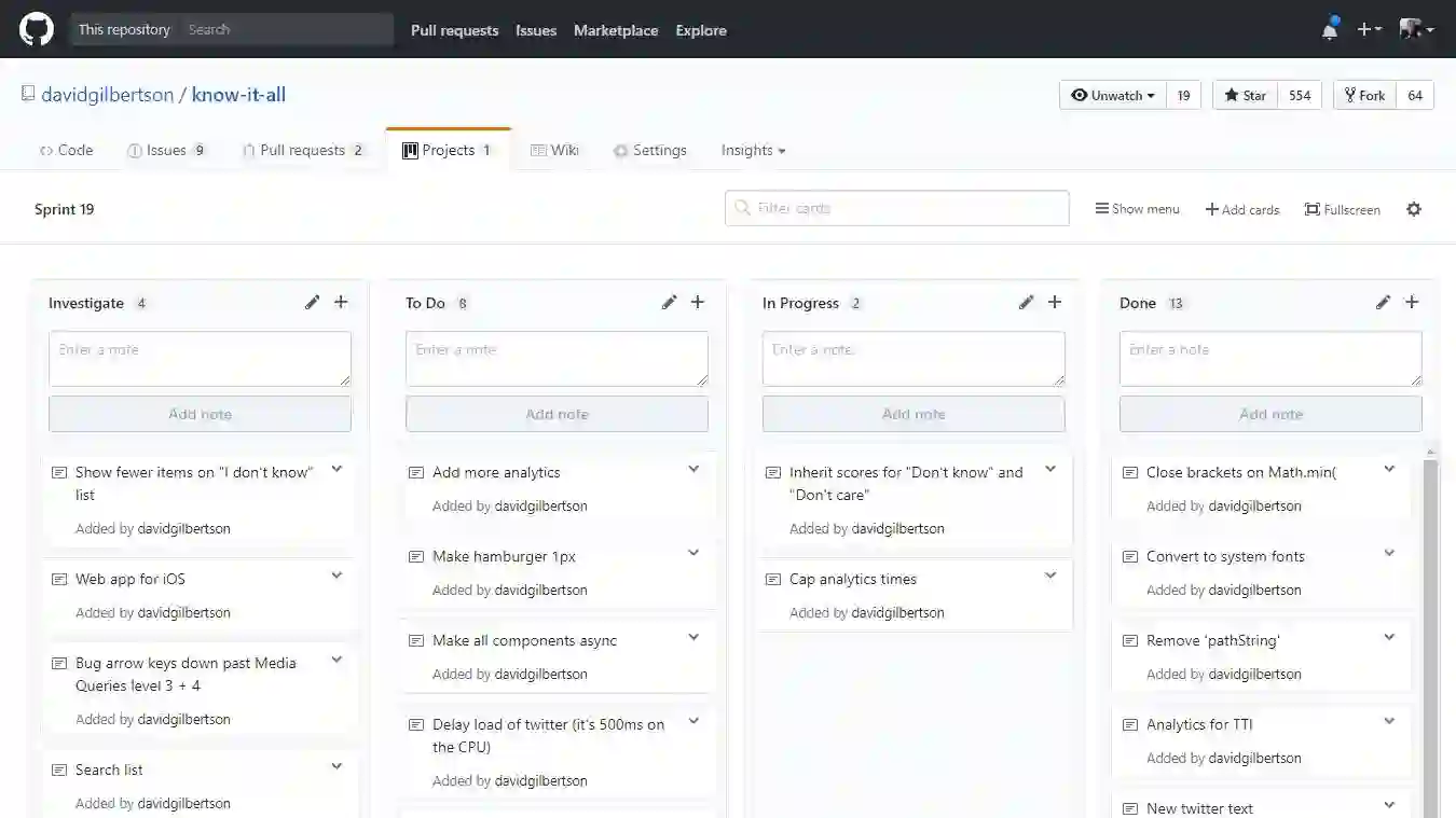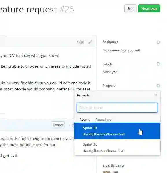 就在几周前我了解到GitHub也提供项目管理。就在你的仓库中找到Projects,我都有点想把我在Trello的工作项移植过来了。