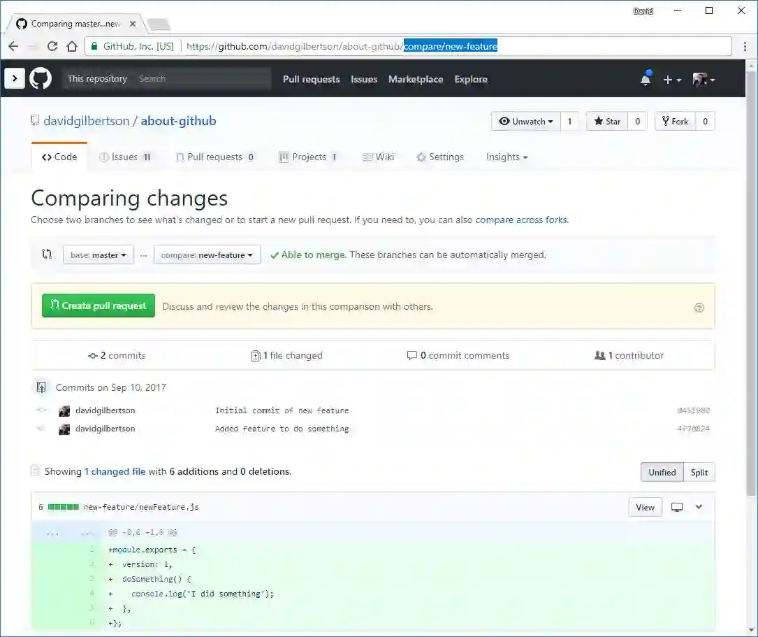 与主干对比,两个分支对比,输入/compare/**integration-branch...**my-branch