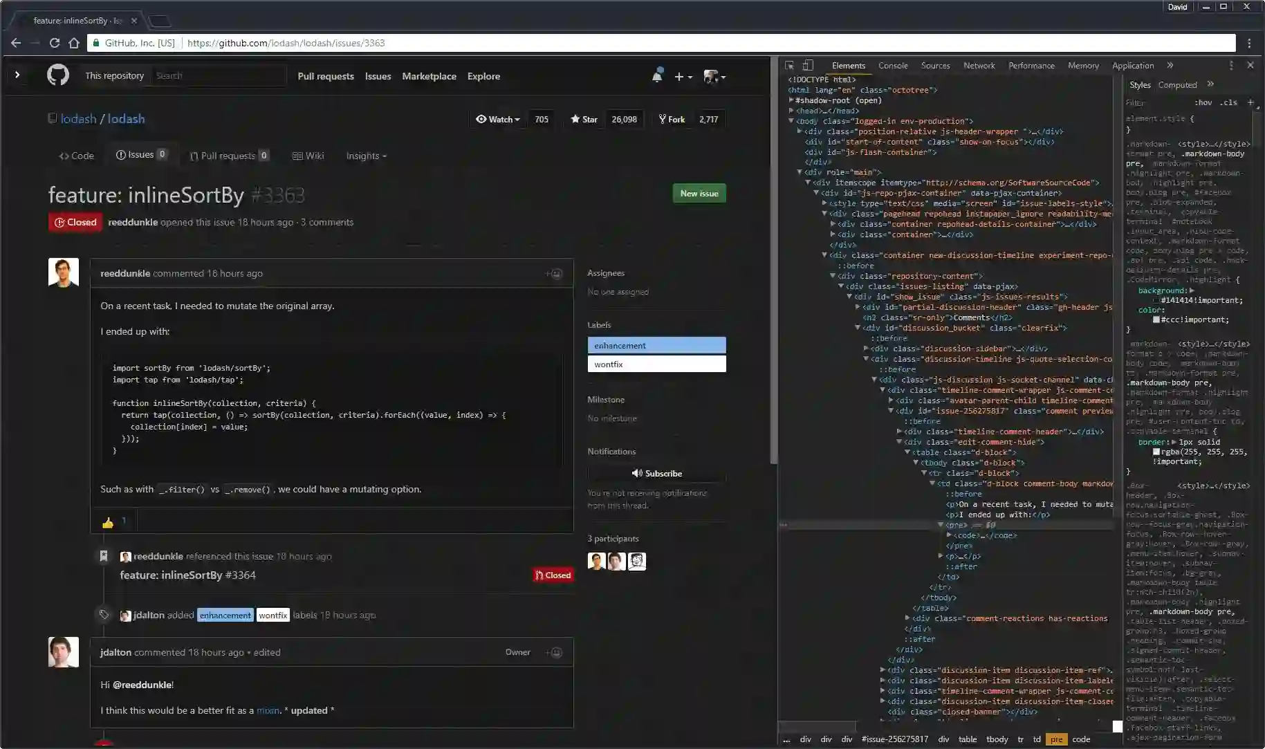 插件组合: Stylish 这个插件允许你把主题应用到任何一个网站:(https://chrome.google.com/webstore/detail/stylish-custom-themes-for/fjnbnpbmkenffdnngjfgmeleoegfcffe/related?hl=en) 和 GitHub 黑色主题(https://userstyles.org/styles/37035/github-dark)。 为了看上去统一,把谷歌开发工具换成黑色(这个是内置的,在设置中打开),然后换成Atom One Dark 黑色主题 (https://chrome.google.com/webstore/detail/atom-one-dark-theme/obfjhhknlilnfgfakanjeimidgocmkim?hl=en)。