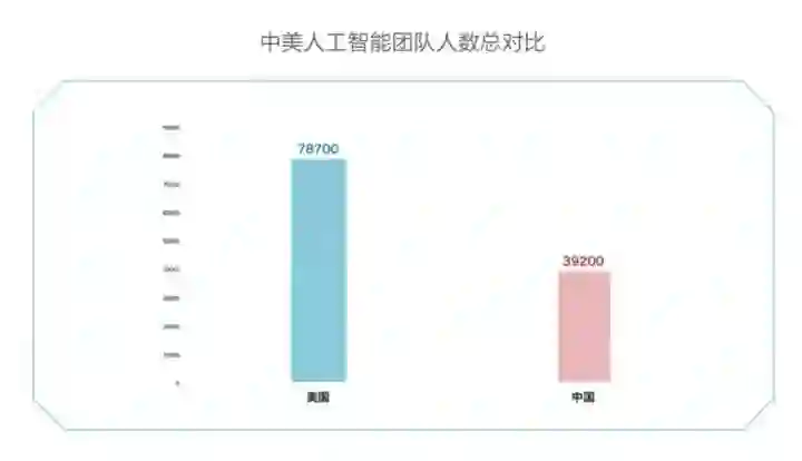 美国1078家人工智能企业约有78700名员工,中国592家公司中约有39200位员工,只有美国的50%。其中,美国基础层人才数量是中国的13.8倍。