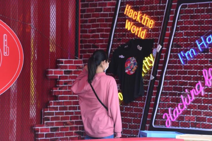 除了这款路由器吸引了大家外,现场的黑客文化区对外国朋友们吸引力最大,虽然听不懂他们说了啥,不过他们在黑客文化区拍照的反应表明老外对黑客文化更加认同。
