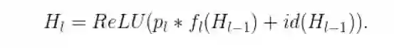 如果p_l表示的是第l层在训练中的生存概率,那么在测试过程中,我们就能得到以下的方程式: