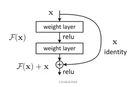 [2]的作者认为,增加网络的层不应该降低网络的性能,因为我们可以将“恒等变换(identity mapping)”简单地叠加在网络上,而且所得到的输出架构也会执行相同的操作。这就暗示了更深层的模型的训练错误率不应该高于与之对应的浅层模型。他们还作出了这样的假设:让堆叠的层适应一个残差映射,与让它们直接适应所需的底层映射相比要简单一些,上图所示的残差块能够明确地使它完成这一点。