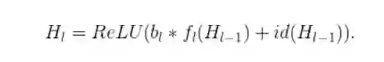 既然我们已经知道了H_(l-1)是一个ReLU的输出结果,而且这个输出结果已经是非负的了,那么上面的方程式就会减少到只剩下一个恒等层: