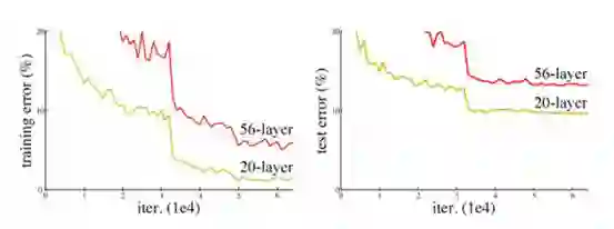 然而,我们不能通过简单地叠加层的方式来增加网络的深度。梯度消失问题的存在,使深度网络的训练变得相当困难。“梯度消失”问题指的是即当梯度在被反向传播到前面的层时,重复的相乘可能会使梯度变得无限小。因此,随着网络深度的不断增加,其性能会逐渐趋于饱和,甚至还会开始下降。