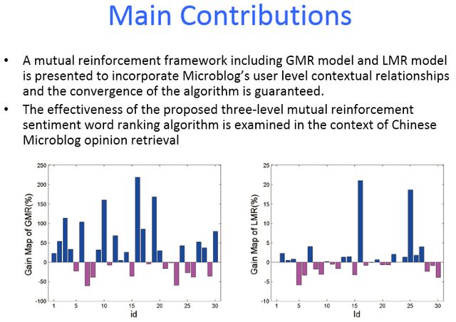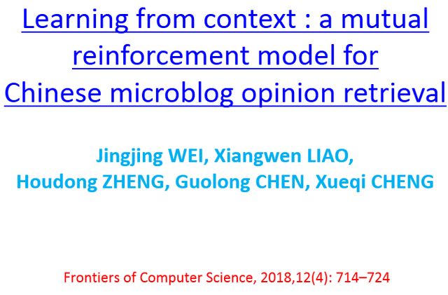 现有观点检索模型缺乏对微博中上下文语境进行有效利用。为此,提出了一种基于相互增强模型的中文微博观点检索方法。首先,构建了一个统一的三层异质图框架,有效地整合了用户社交上下文语境关系:“用户-用户”的用户间交互关系和“用户-博文/评论”的用户内部关系;然后,根据不同层次之间的相互增强关系在异质图上进行随机游走,从而为网络观点词进行赋权;最后,把所获得的观点词权重应用于观点检索模型进行验证。实验结果表明了本文所提出的方法的可行性和有效性,同时本文从理论上证明了该方法的收敛性。