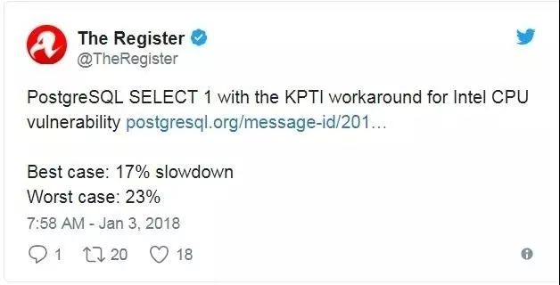 据外媒The Register 报道,英特尔处理器存在一个底层设计缺陷,要解决这一芯片级漏洞问题,需要重新设计Windows、Linux内核系统,但这一漏洞修补过程可能导致英特尔芯片处理速度放慢,最高下降幅度高达30%。