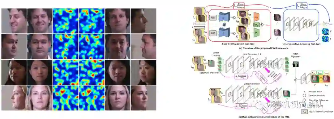 1、PIM是一个新奇统一的深度框架包括了 人脸摆正(Face Frontalization sub-Net, FFN)和一个特征学习(Discriminative Learning sub-NetDLN);