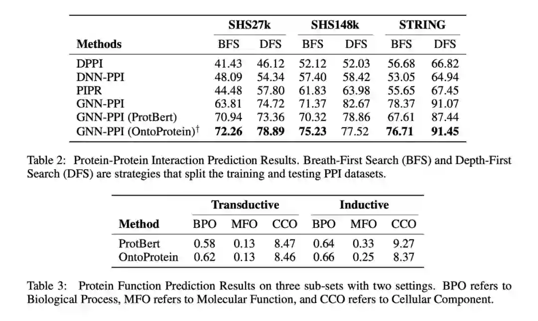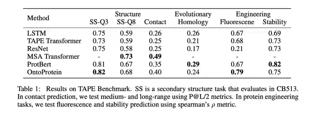 我们在蛋白质测试基准 TAPE,以及蛋白质蛋白质交互、蛋白质功能预测(我们参考 CAFA 竞赛构建了一个新的蛋白质功能预测数据集)上进行了实验。如下表所示,可以发现融合知识图谱的蛋白质预训练方法在一定程度上取得了较好或可比的性能。特别地,我们的方法没有使用同源序列比对(MSA),因此较难超越基于 MSA Transformer 的方法。详细的实验结果请参见论文,我们会在近期将预训练模型整理并发布到 Huggingface 上供社区使用。