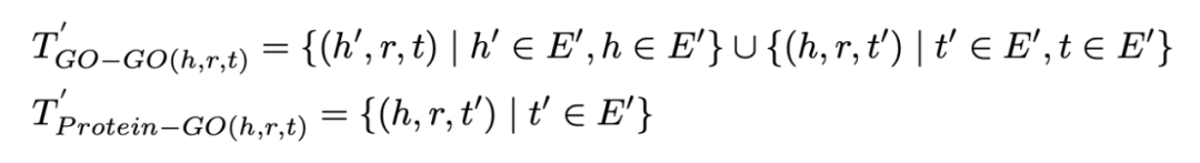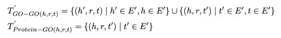 注意到这里的事实知识分为两类不同的三元组,分别是 Go-Go 和蛋白质-Go,因此我们提出一种知识增强的负采样方法,以获得更有代表性的负样本提升预训练效果,采样方式如下 :