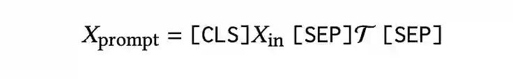 我们的方法是一个通用的框架。如图所示,我们遵循之前的提示学习思路,使用特定的任务提示模板来构建任务输入和生成。提示模板构建如下公式所示: