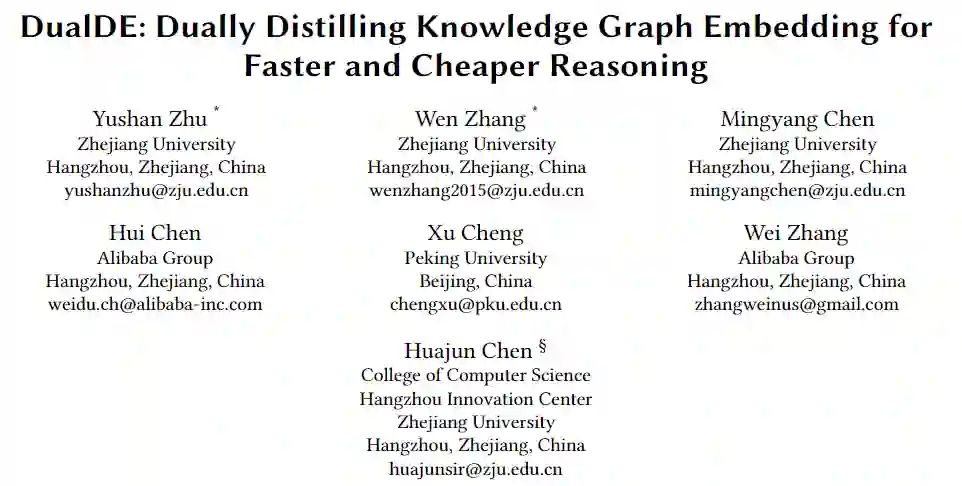 知识蒸馏是一种广泛使用的技术,用于从大模型(教师模型)中学习知识以构建较小的模型(学生模型)。学生从真实标签和老师模型中的软标签这二者中学习。在本项工作中,我们提出了一种名为 DualDE 的新型 KGE 蒸馏方法,该方法能够将高维 KGE 蒸馏提取出较小的嵌入尺寸,而精度损失很小或没有损失。在DualDE中,我们考虑了老师和学生之间的双重影响:1)教师对学生的影响;2)学生对教师的影响。