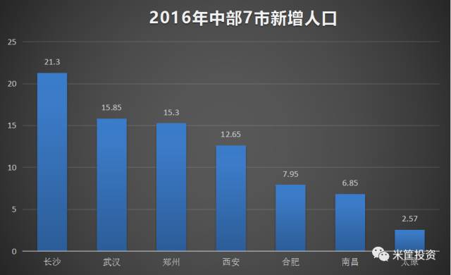 在人口的吸引力上,长沙>武汉>郑州>西安>合肥>南昌>太原。2016年,长沙新增常住人口达21万人,证明着这个城市的活力。武汉与郑州相当,15万人的新增人口基本稳定。