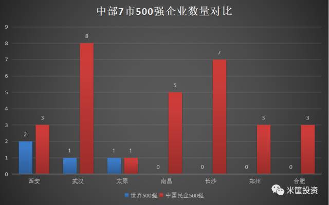 7、中国民企500强,武汉8家,长沙7家,南昌5家,郑州、合肥、西安均3家,太原最弱只有1家。