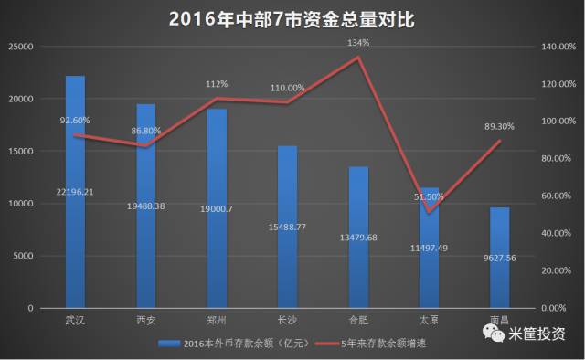 从近5年来的资金增速来看,合肥、长沙、郑州都翻了一番,证明这几个城市对资金的吸引力更强。武汉也接近翻番,而太原则是资金增长最慢的地区,资金对这个城市并不厚爱。